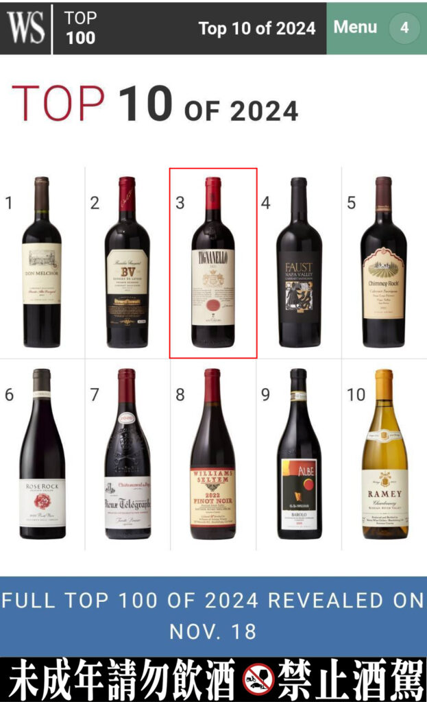 - 2021 年份在 2024 年 Wine Spectator Top 100 中名列第三。