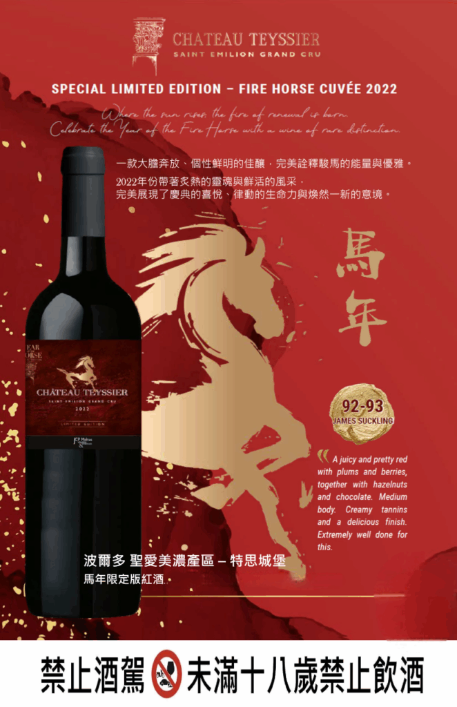 為迎接甲午馬年,塔巴利酒莊特邀設計師打造專屬東方生肖酒標,象徵奔放、自由與力量。每瓶皆為限量編號,不僅是美酒,更是值得傳承的藝術藏品。